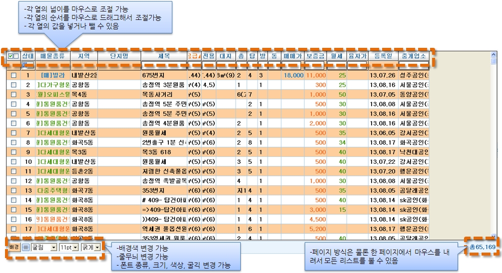 공개매물/나의매물/알리미/긴급전송/스크랩 매물등 다양한 매물장이 있습니다.